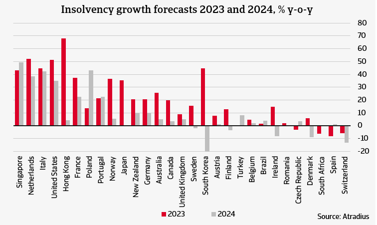 Outlook for full year 2023: higher insolvencies in almost every market