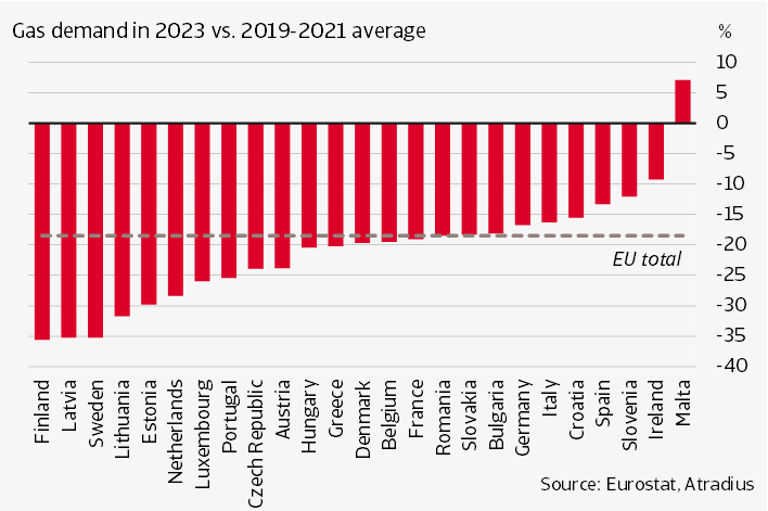 Gas demand lower across the EU