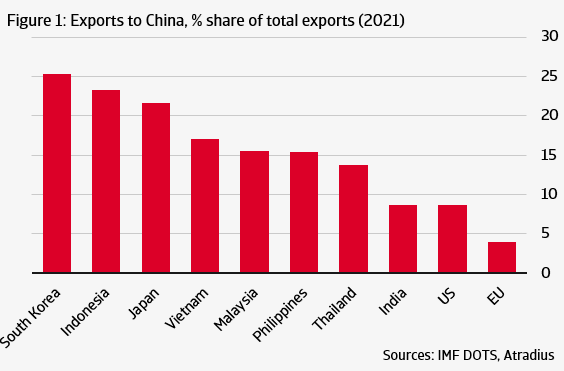 The growth recovery in the major Asian economies is currently taking a step back. In most countries GDP growth this year will be lower than in 2022, but next year growth will pick up again to a decent pace. One of the reasons for the expected acceleration in growth in 2024 is that the Chinese economy is rebounding after the authorities ended their strict zero-Covid policy. However, one should be wary of excessive optimism about the Chinese economy. At the start of the year it is unclear to what extent the end of the zero-Covid policy in China will lead to an upturn in the economy. Private consumption growth in China will pick up thanks to pent-up demand and excess savings, but weak consumer confidence may hold back spending for some time. Companies will be more inclined to invest as the domestic economy reopens, but weak external demand from developed economies and the weak real estate sector are also putting a brake on growth. China's economic development is of great importance to the region, as the country is the most important export destination for most countries and often also an important source of direct investment.