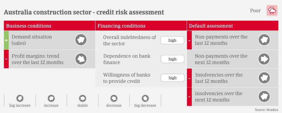 Construction insolvencies increased sharply in 2022, as builders struggled with high prices for key materials, while many had taken on too many projects that were no longer profitable, causing them to go bust. However, this increase was from a very low level, because during the pandemic several forms of government support led to sharp decreases in 2020 and 2021. We expect further rising construction business failures in 2023 because cash flow issues persist for many construction companies and market conditions remain volatile. Therefore, we still assess the credit risk situation of the industry as “Poor”.