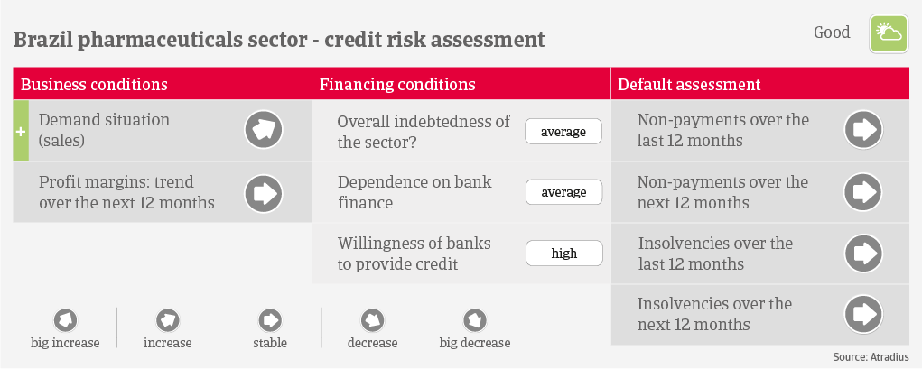 Brazil’s pharmaceuticals and healthcare sector will see robust demand in the mid- and long-term, due to a rapid change in demographics (the share of population aged 60 years or older is forecast to reach 19% in 2030). The number of chronic diseases like diabetes is rising, which will spur demand for more complex medical treatments. However, producers of brand-name drugs face the issue that public healthcare is obliged to favour the purchase of generics, even when sales prices are comparable.